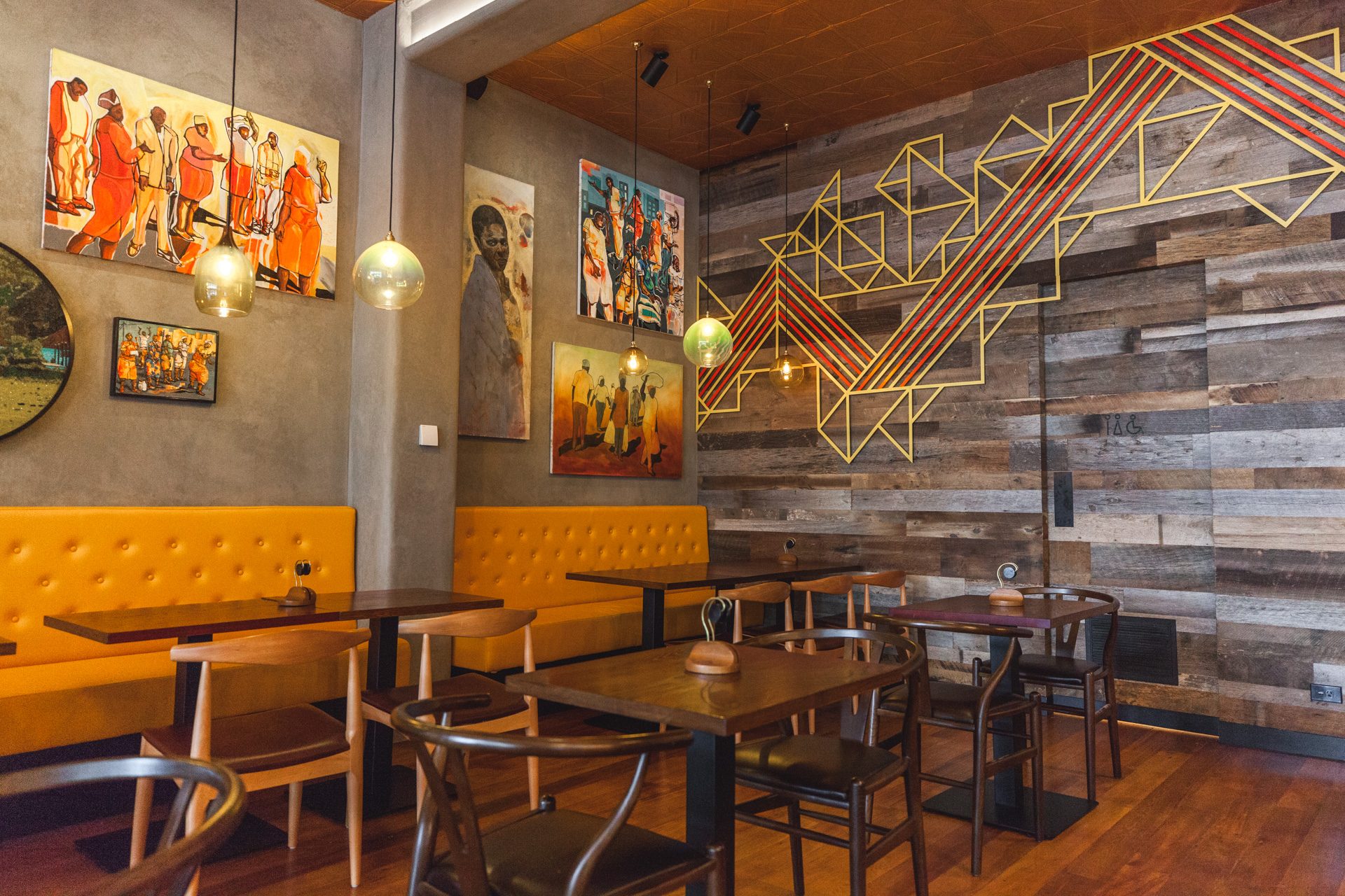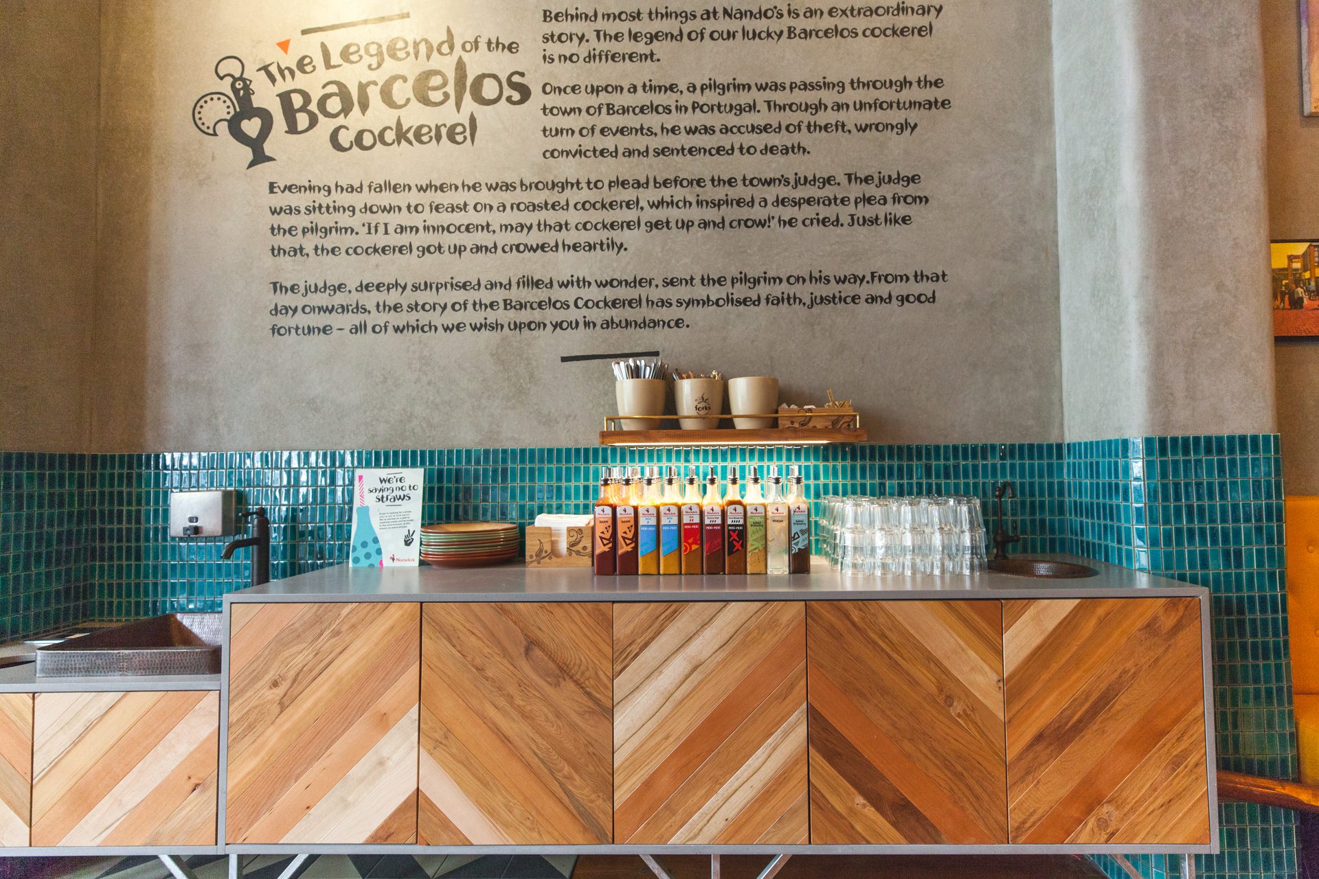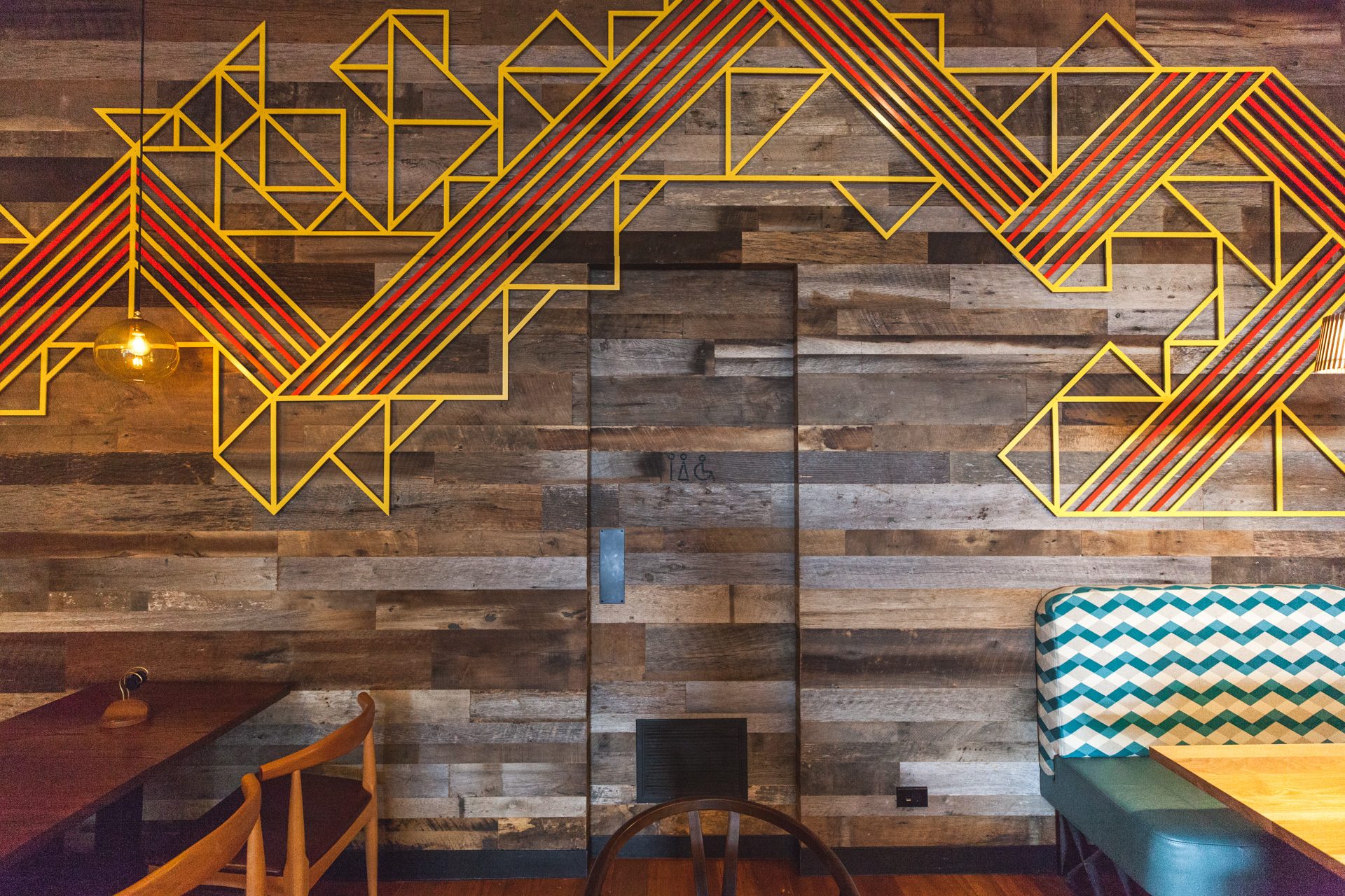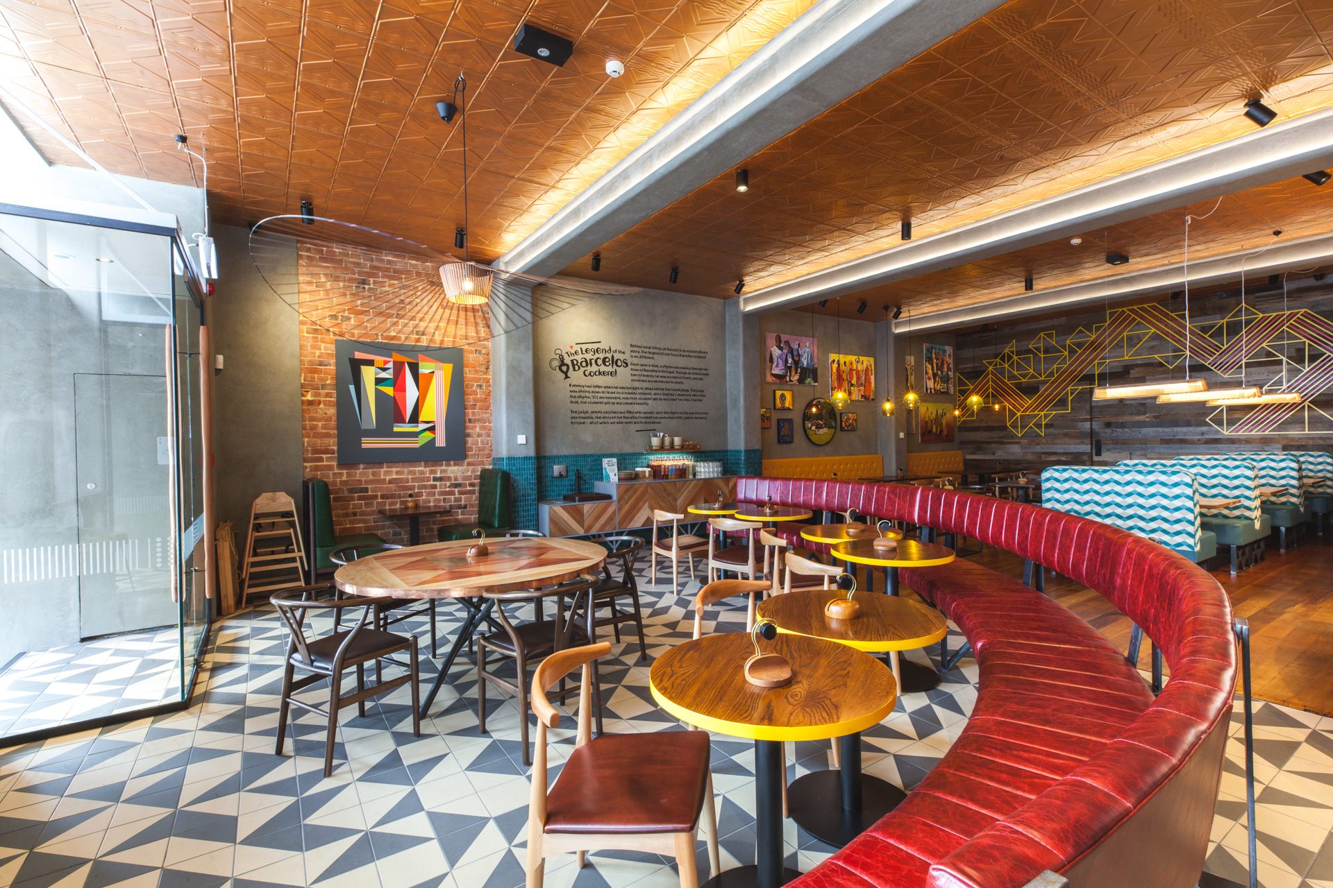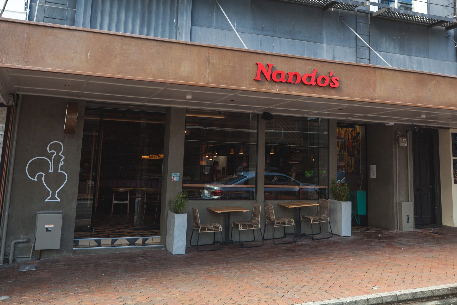 This Nandos Restaurant is situated within the iconic “Octagon” in the heart of Dunedin.  Seamlessly incorporating rustic Vidaspace wall panelling, solid plaster, and copper trims whilst paying homage to the richness and history of the building through polishing the original floor boards and exposing the brick veneer. Colourful metal feature panels, handmade African tiles, pressed tin ceiling panels, bespoke feature light fittings all rounded off with personally selected art pieces from Africa pay homage to the Nandos history.